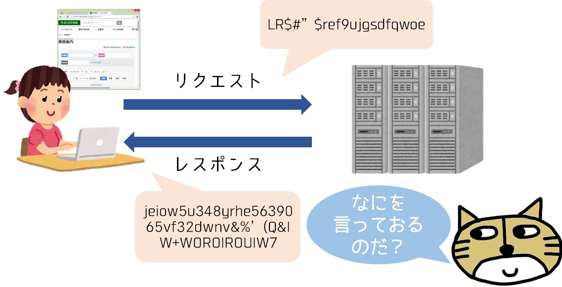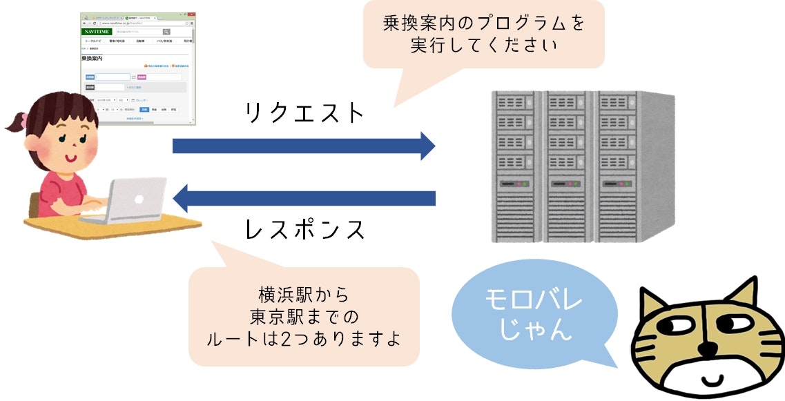 以下の画像において、ユーザーが左の女の子、右がWebサーバーですね。
