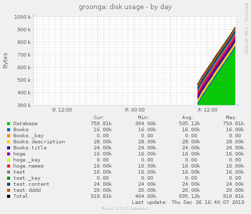 | groonga_disk | テーブルのディスク使用比率情報 |