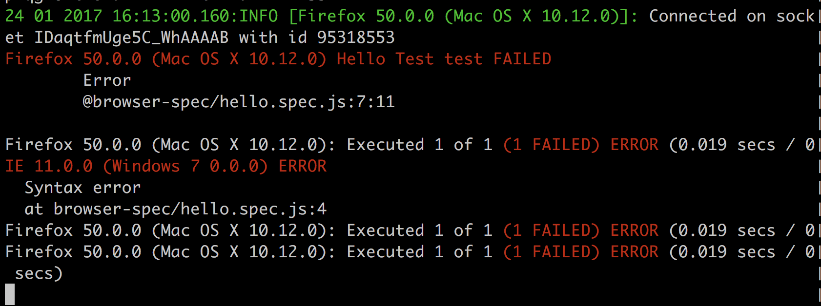 mocha の テストを Windows IE11 と Firefox 50 で動かしてみた。