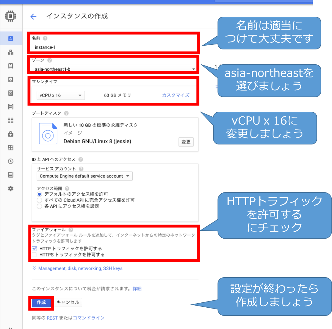1-1. GCEのインスタンスの起動