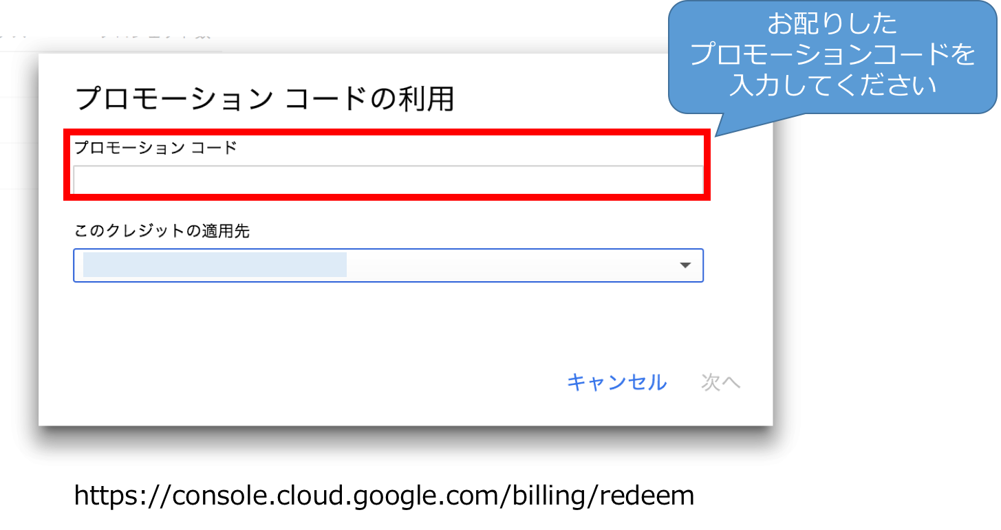 GCPのクーポンコード入力