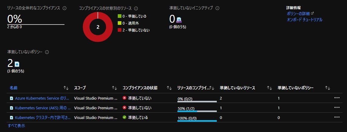 Azure Kubernetes Service (AKS) において、Azure Policy と連携させることで Kubernetes クラスターのコンプライアンスの状態を管理することができます。