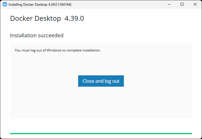 インストールが完了したら、「Installation succeeded」と表示されるので、「Close and log out」をクリックして、PCを再起動します。