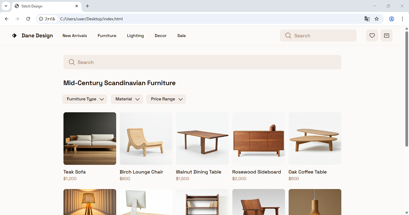 今回は試しに、Webアプリ用の家具ストアのページを作成してみます。