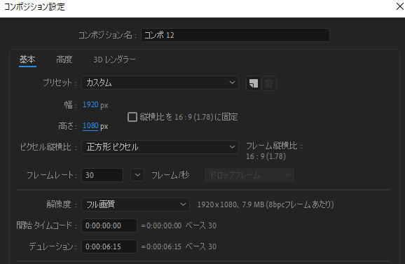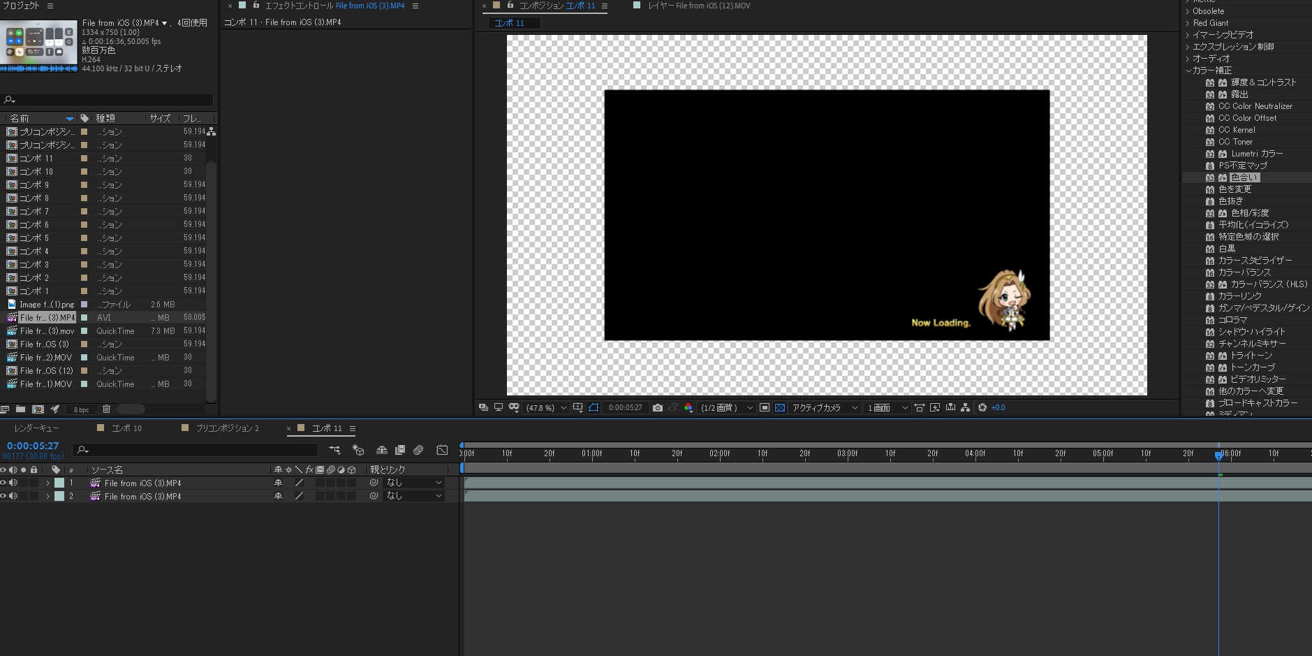 そのあと、コンポを作成し、アイドル動画だけを2つ入れましょー。