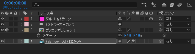 なので、「3Dカメラトラック」を使って調整していきましょー。