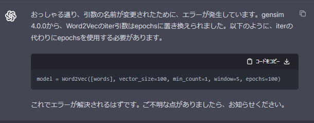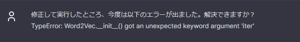 エラー内容をChatGPT先生に報告し、数秒で返ってきた修正コードを実行すると...