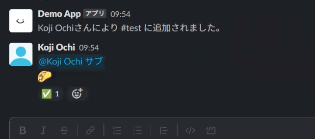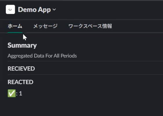 4.Slackアプリのホームにリアクション✅ボタンが計測されます。
