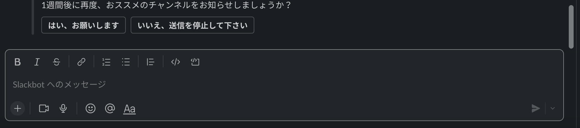 Slackでアクションを実行するために使用可能なショートカットがあります。