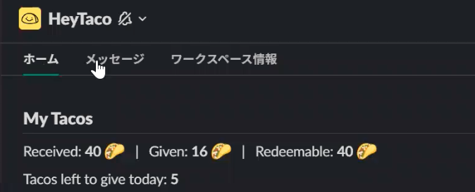 制度の内容は、Slack内のタコス制度用のチャンネルで、お世話になった従業員をメンションして感謝のメッセージとタコススタンプを押すというものです。