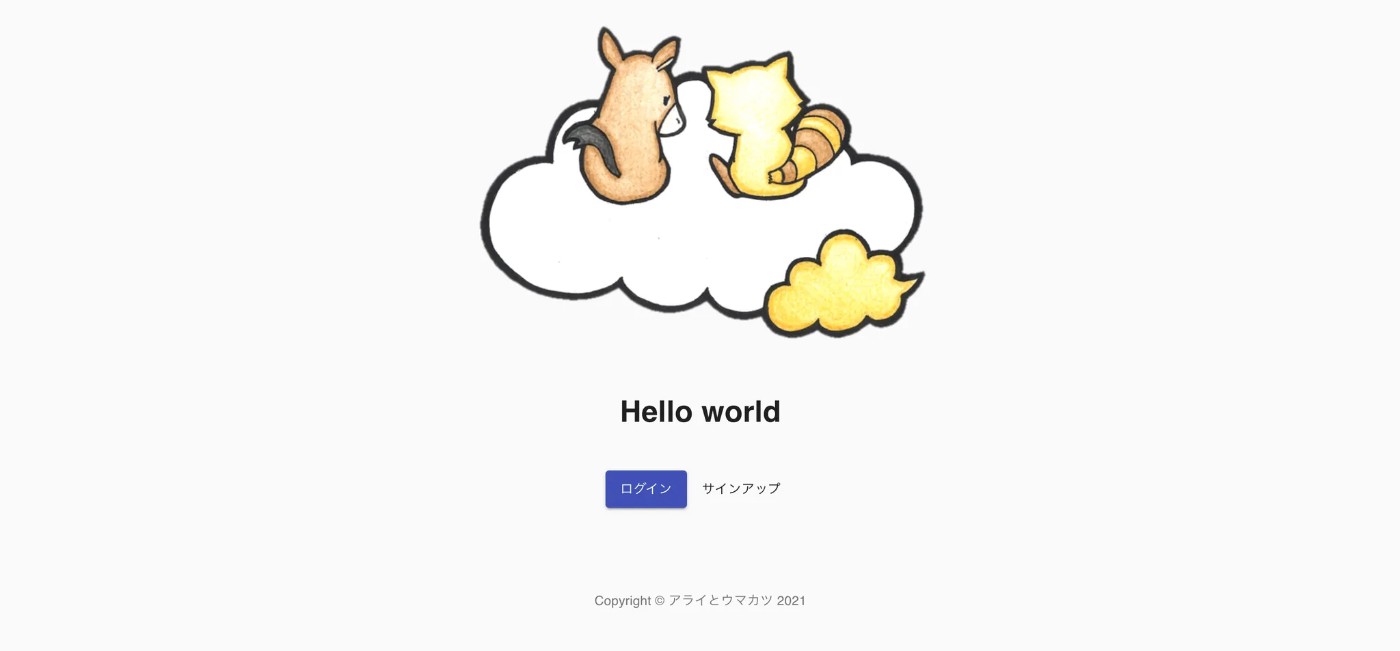 フロントエンドアプリケーションのトップページにアクセスすると、バックエンドアプリケーションからAPIレスポンスとして取得したHello worldが出力されることが確認できます。