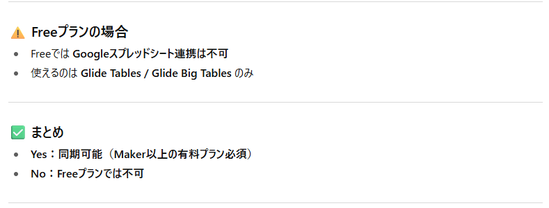 いろんなGlideの記事やYou tubeを探し漁ったのですが、「できる」や「できない」どっちもあって、かなり混乱しました・・・![]()
