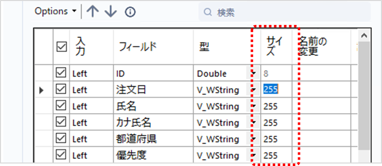 データのサイズ(桁数)を変更することができます。