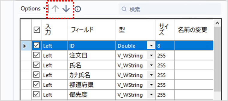 対象の項目を選択し、上部に表示されている上下の矢印をクリックして表示順を変更します。