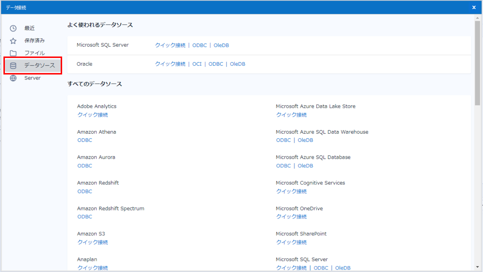 さまざまなデータ形式への接続が可能ですので実際に見ていきたいと思います。