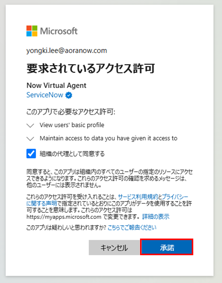 ③ServiceNow for Microsoft 365の内部アプリを許可する