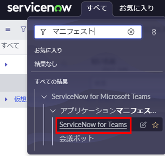 ①すべて > ServiceNow for Microsoft Teams > アプリケーションマニフェスト > ServiceNow for Teams