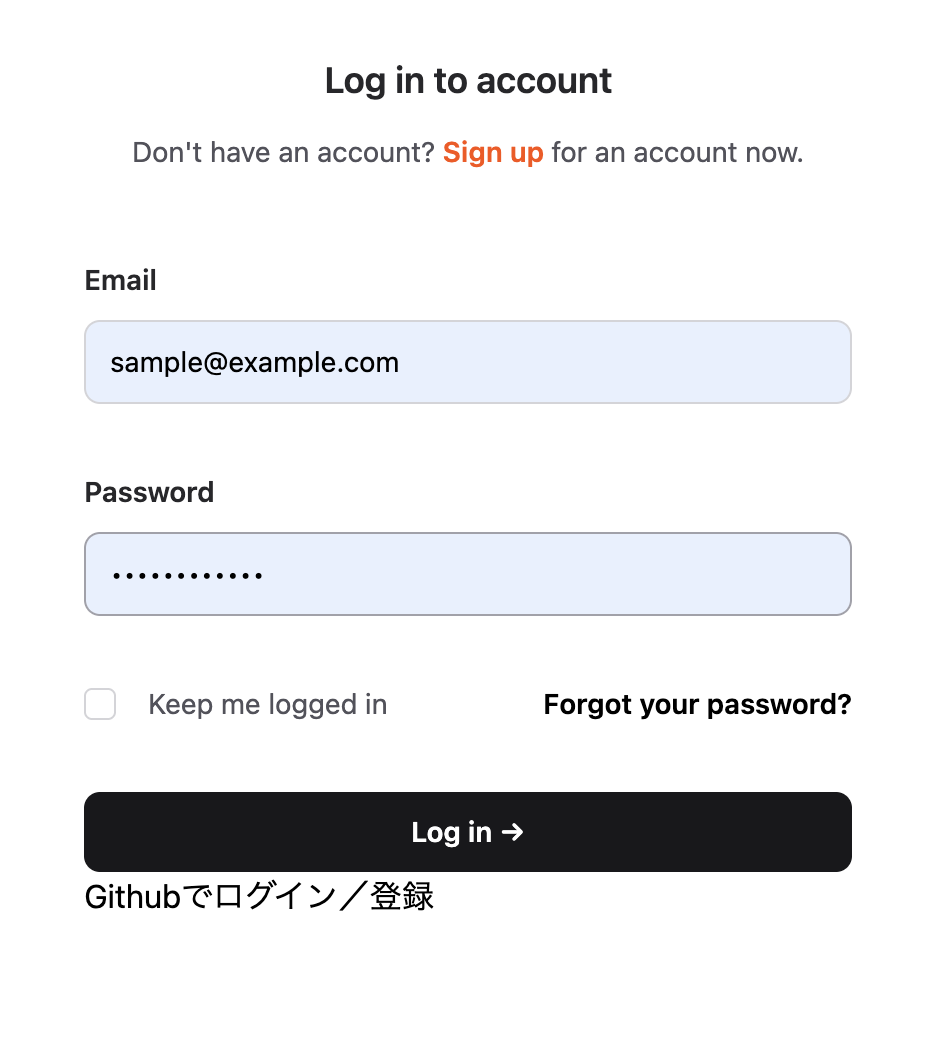 先ほど gen.auth にてログインページが生成されていると思いますので、そちらのログインページに Github での認証のリンクを追加しましょう。