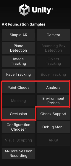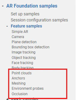 - 'Feature samples'のうち、下図の赤枠にある5つの機能について確認しました。