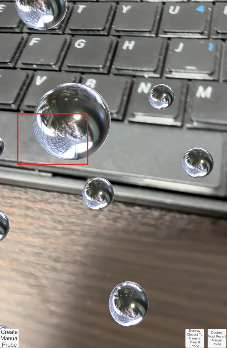 実際のカメラ映像をもとに3Dテクスチャを生成し、それをシーン内の反射プローブに適用するサンプルです。