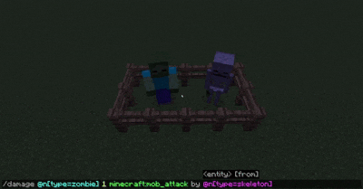 を実行すれば、最寄りのゾンビが最寄りのスケルトンに攻撃を受けたことになり、ゾンビが罪なきスケルトンに対して敵対的になります。