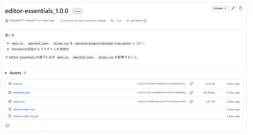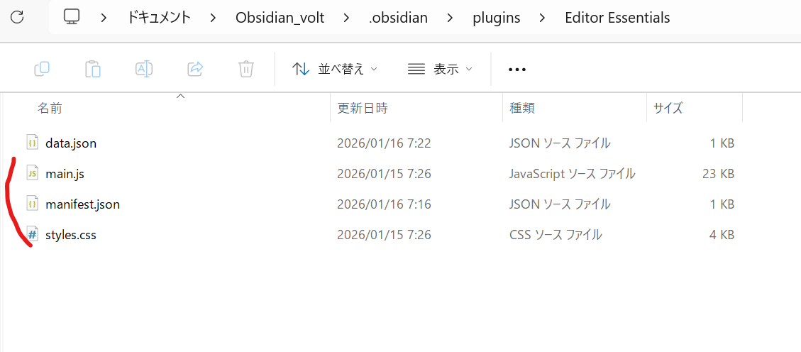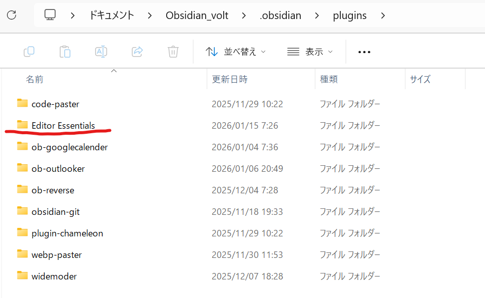 .obsidian/plugins/Editor Essentials/フォルダを作成
