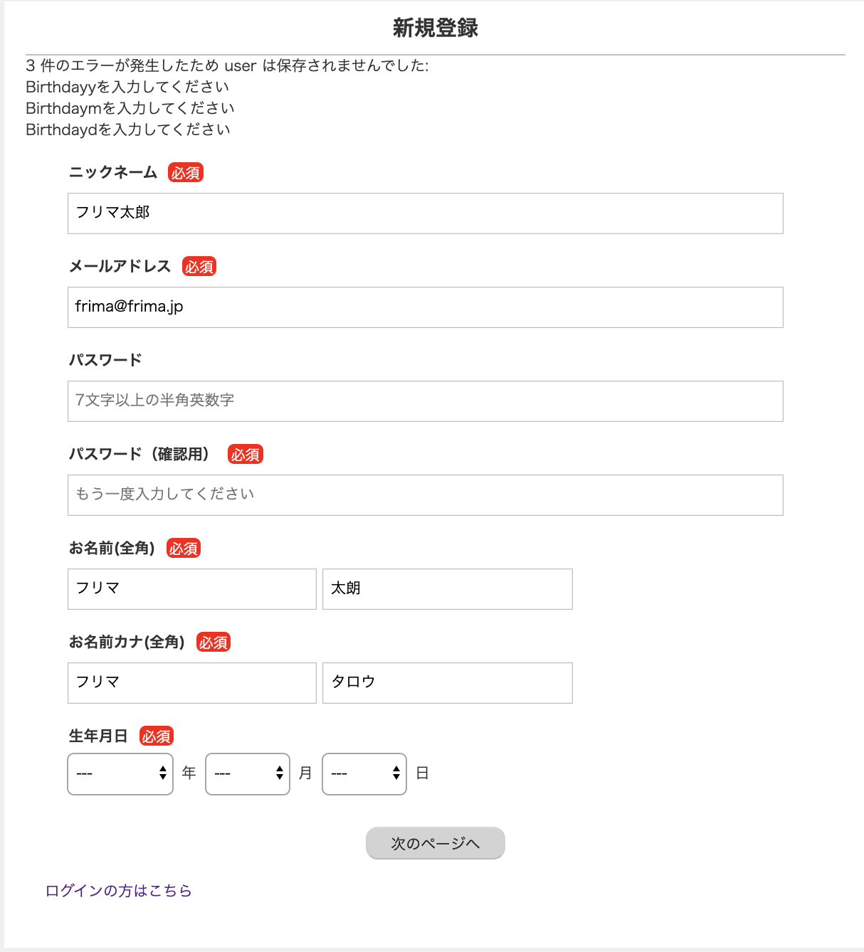 ミスで生年月日を何も選択せずに登録ボタンを押してしまった時です。