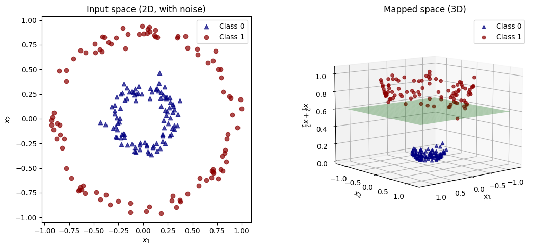 今回は非線形分類が求められるような以下のデータを作成し、カーネルSVMでの分類を試みる。