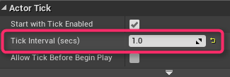 Event TickノードにコメントでTick Intervalの値を0.0から1.0に変更と書きましたが、この理由については後ほど説明します。