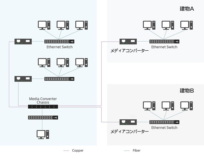 事例から学ぶ:メディアコンバーターとスイッチングハブとの併用