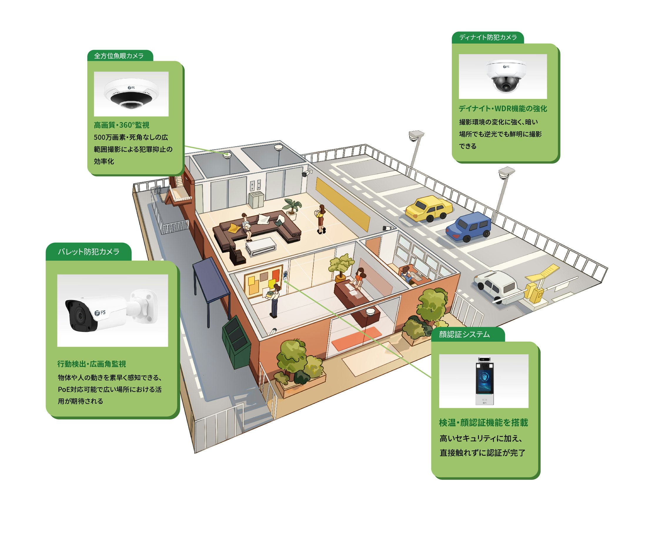 高画質 高い拡張性 遠隔操作・監視が可能 配線が簡単 |