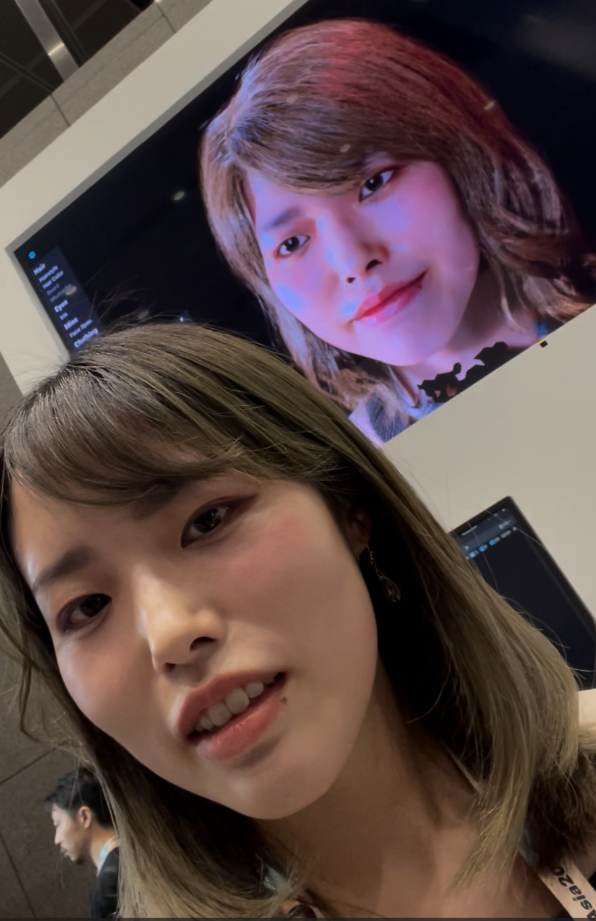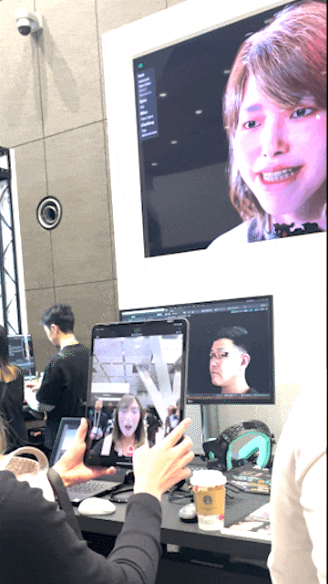 さらに、表情をリアルタイムでキャプチャして3Dモデルに反映させるデモも行っていました。別の人が操作することもできますが、自分自身の顔のスキャンを使って、私が操作したときの様子です。実物によく似ていますね!
