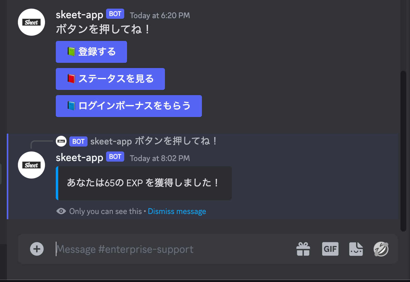 次に、Discord ボットにボタン機能を実装し、ユーザーがボタンをクリックすることで Firestore に自動的に登録されるようにします。これにより、ユーザーが簡単にボットの機能を利用できるようになります。