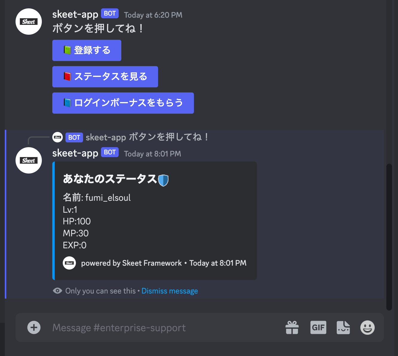 このように Discordのインタラクションと Firestoreのデータを連携させることができました。