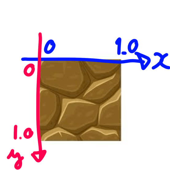 図でみるUV座標 左上が(0,0) 右下が(1,1)