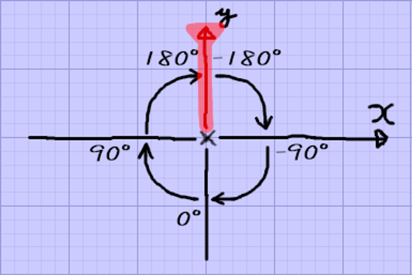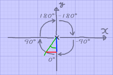 //基準となる軸からの距離を求める → atan2で角度を求める