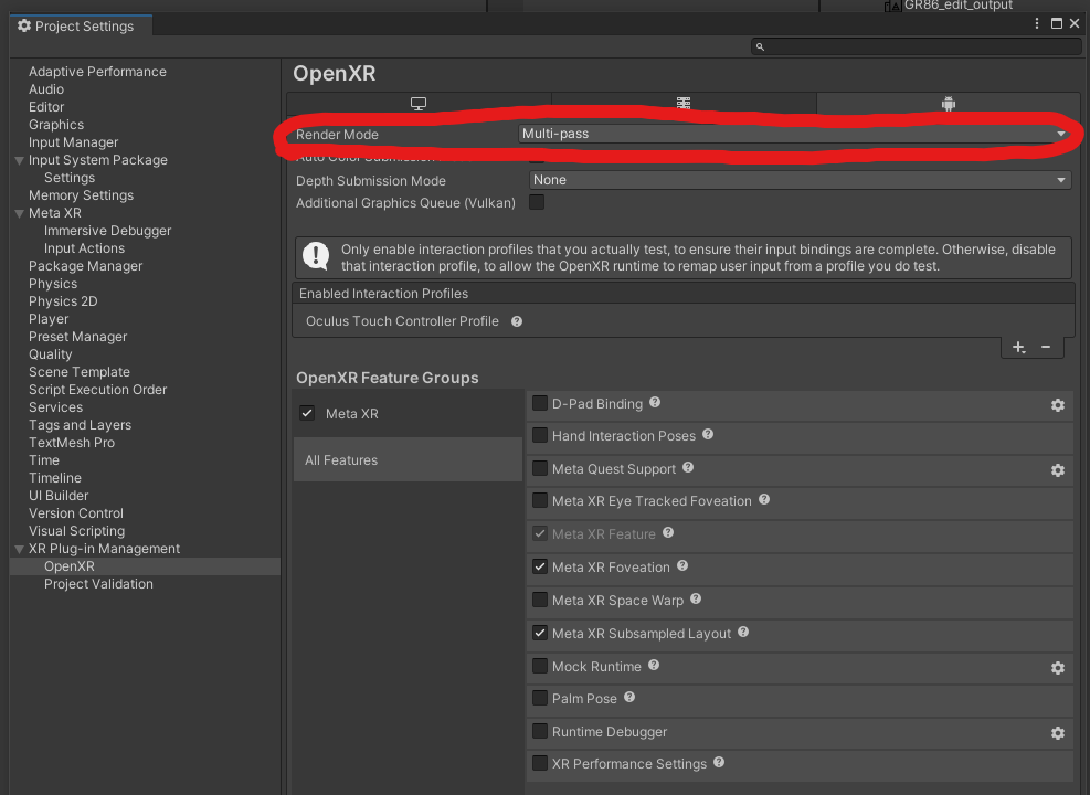 上部メニュー/Edit/Project Settings/XR Plug-in Management/OpenXRから