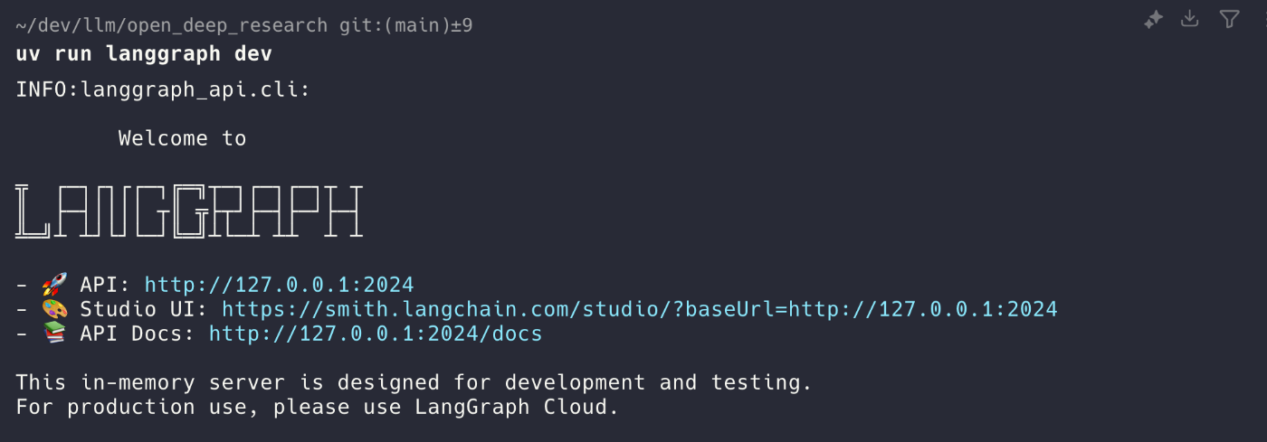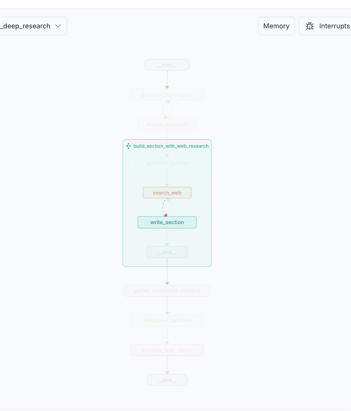 Open Deep ResearchのワークフローはLangGraphで構築されており、LangGraph Studio上でグラフを可視化・実行ができます。