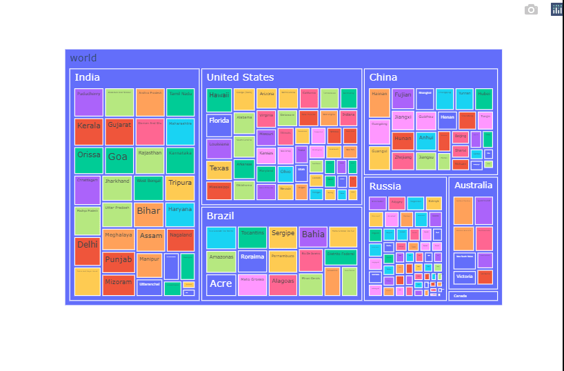 fig = px.treemap(country_state_temp.head(200), path=['world', 'Country','State'], values='AverageTemperature',