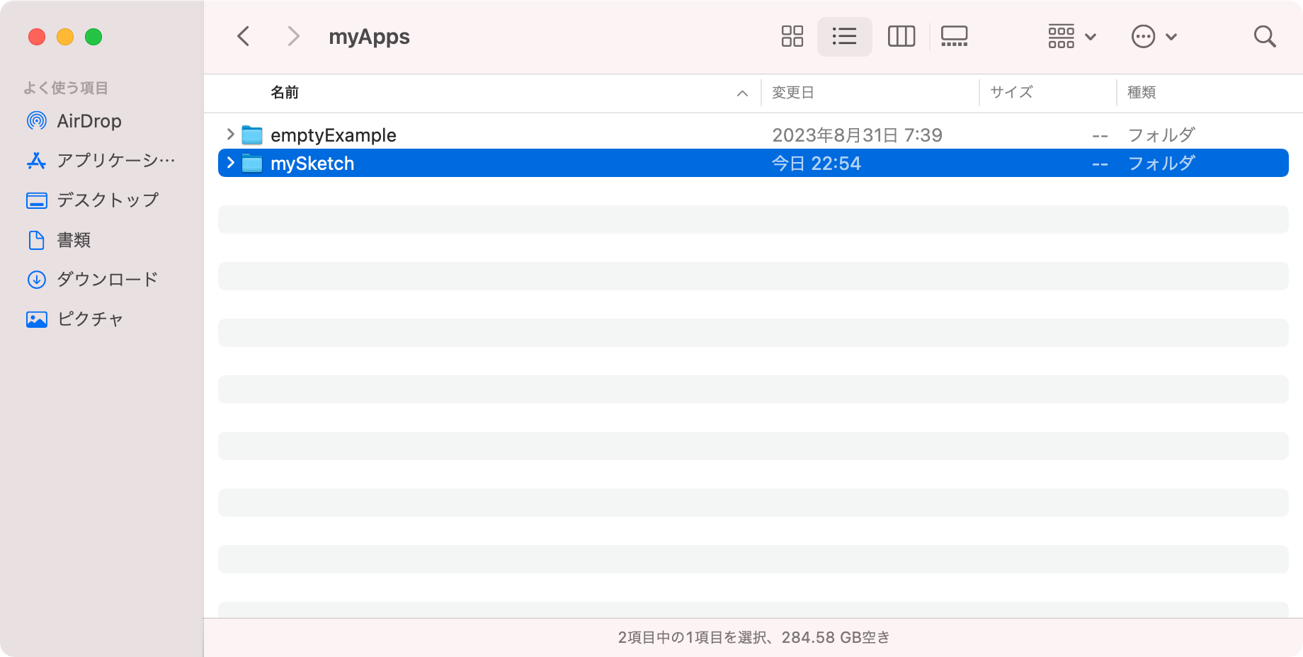 するとプロジェクトがopenFrameworks/apps/myApps以下に生成される