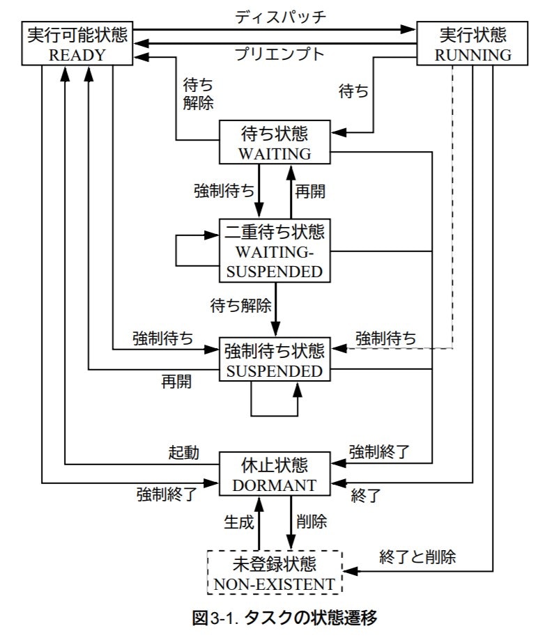 タスクの状態は(1)の3章2節1項内に記載されている図を抜粋します.