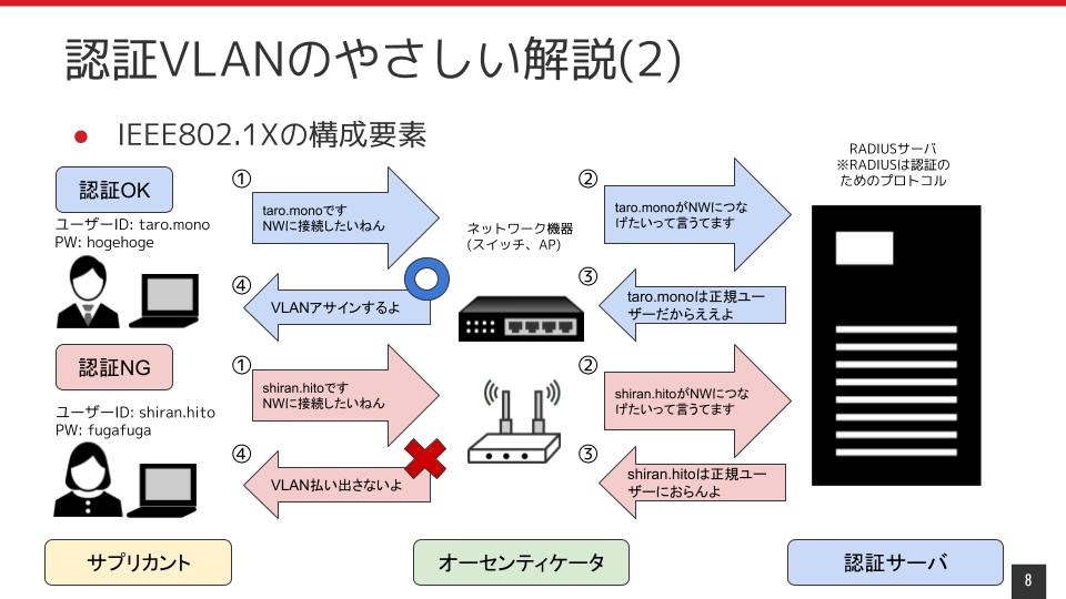 IEEE802.1X・サプリカント・オーセンティケーター・EAP・RADIUS・AAA