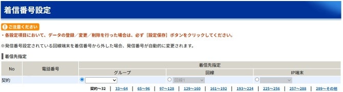 左メニューの電話設定をクリックして着信番号設定をクリックするとこちらの画面になります。