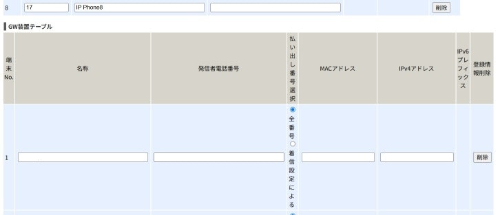 ちなみに、前者は内線IP端末テーブルを一番上に引き上げる必要がありました。