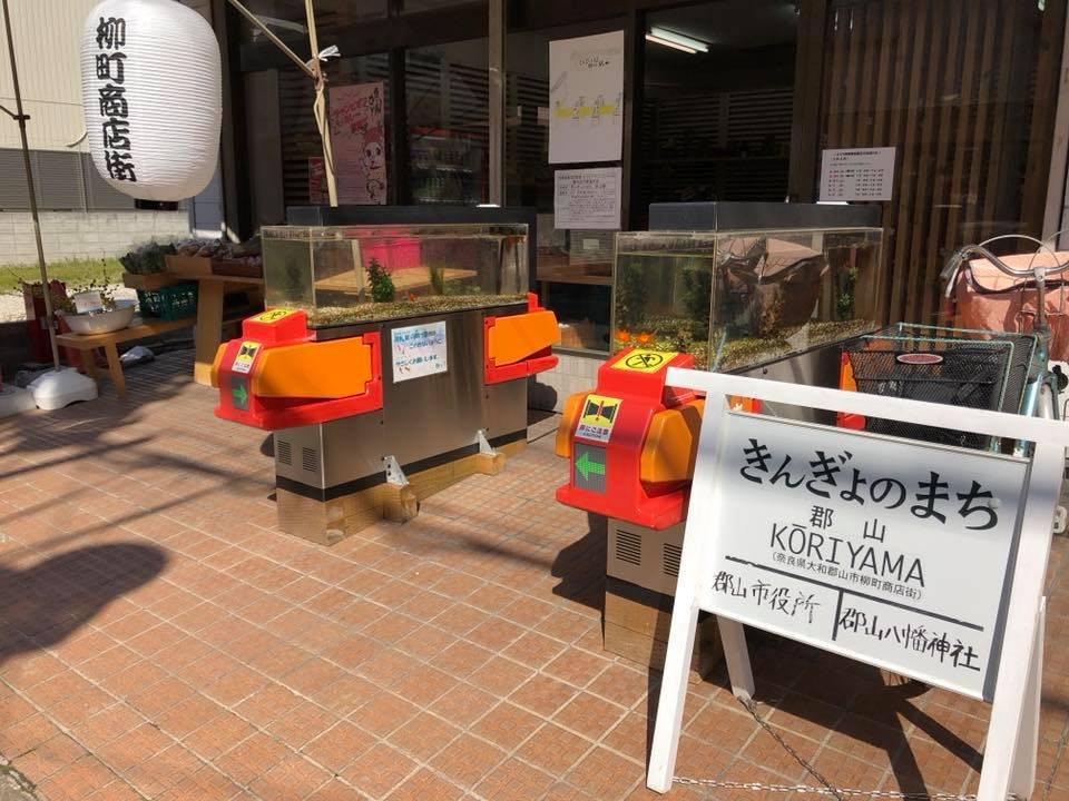 uMapへのデータの追加や編集方法を紹介していただき、実際にまちなかを探索し金魚スポットを再発見していきました。大和郡山は、「金魚が泳ぐ城下町」と言っているだけあって、あらゆるところに金魚がいます。