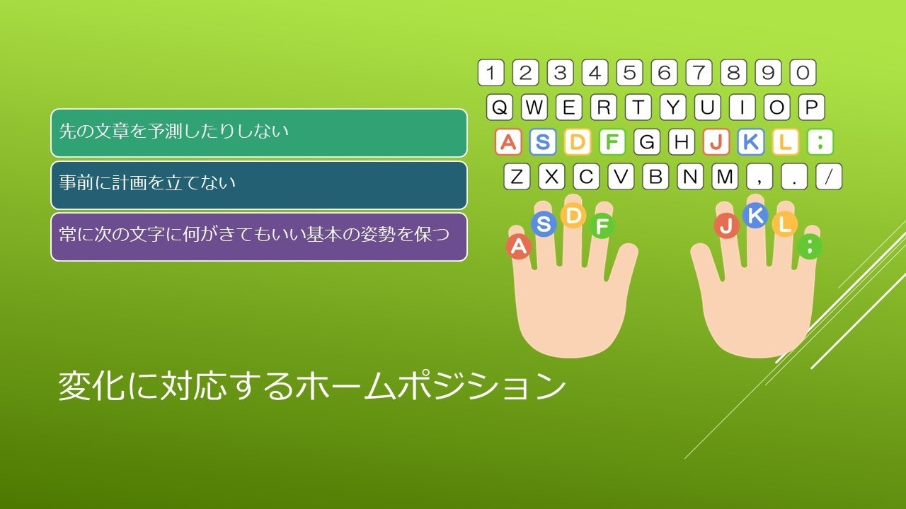 アジャイルでは、この予測の習慣を身に付けることがとても大切です。タッチタイピングのように、常にホームポジションを維持するのと同じで、常に対応できる状態を保つことがアジャイルの肝なのです。