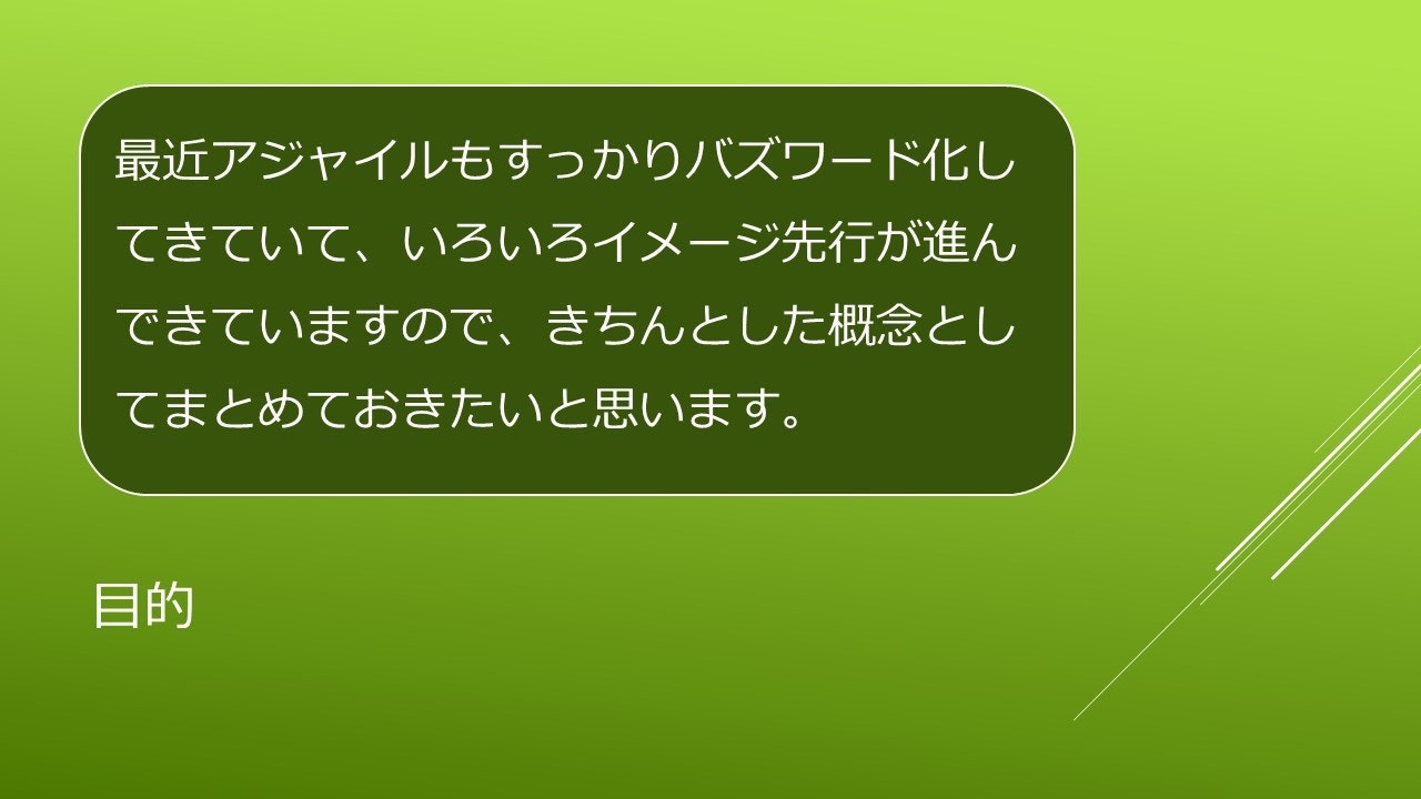 アジャイルの普及は「まだまだだ」と言われつつ、実際には徐々に広がってきましたよね。しかし、普及が遅れる中で、ウォーターフォールの文化に由来するデマや誤解も広がって、アジャイルがバズワード化しているようにも感じます。そこで、一度ちゃんと整理しておくのが良いかなと。あくまで私個人の見解になりますが、ぜひ参考にしてみてください。