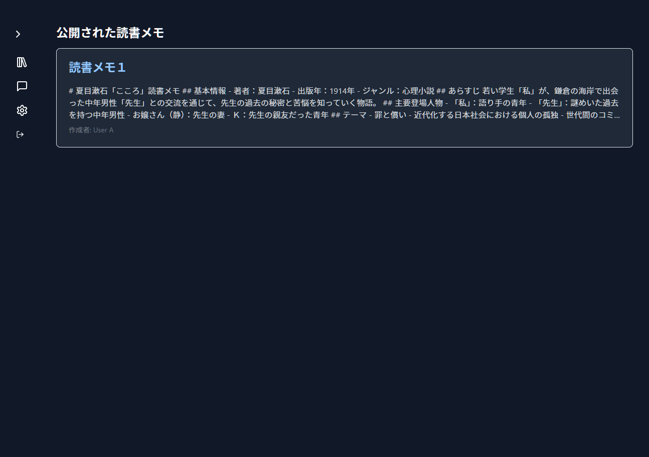 - 各書籍に対して読書メモを複数作成できる