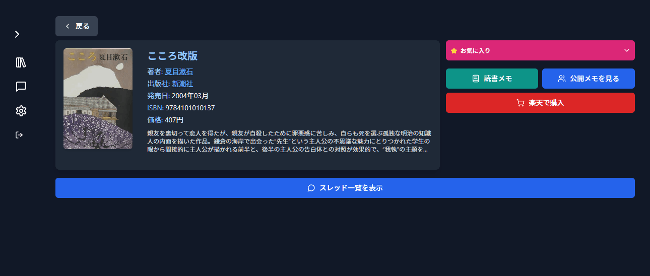 - 各書籍に対してスレッドを複数作成できる