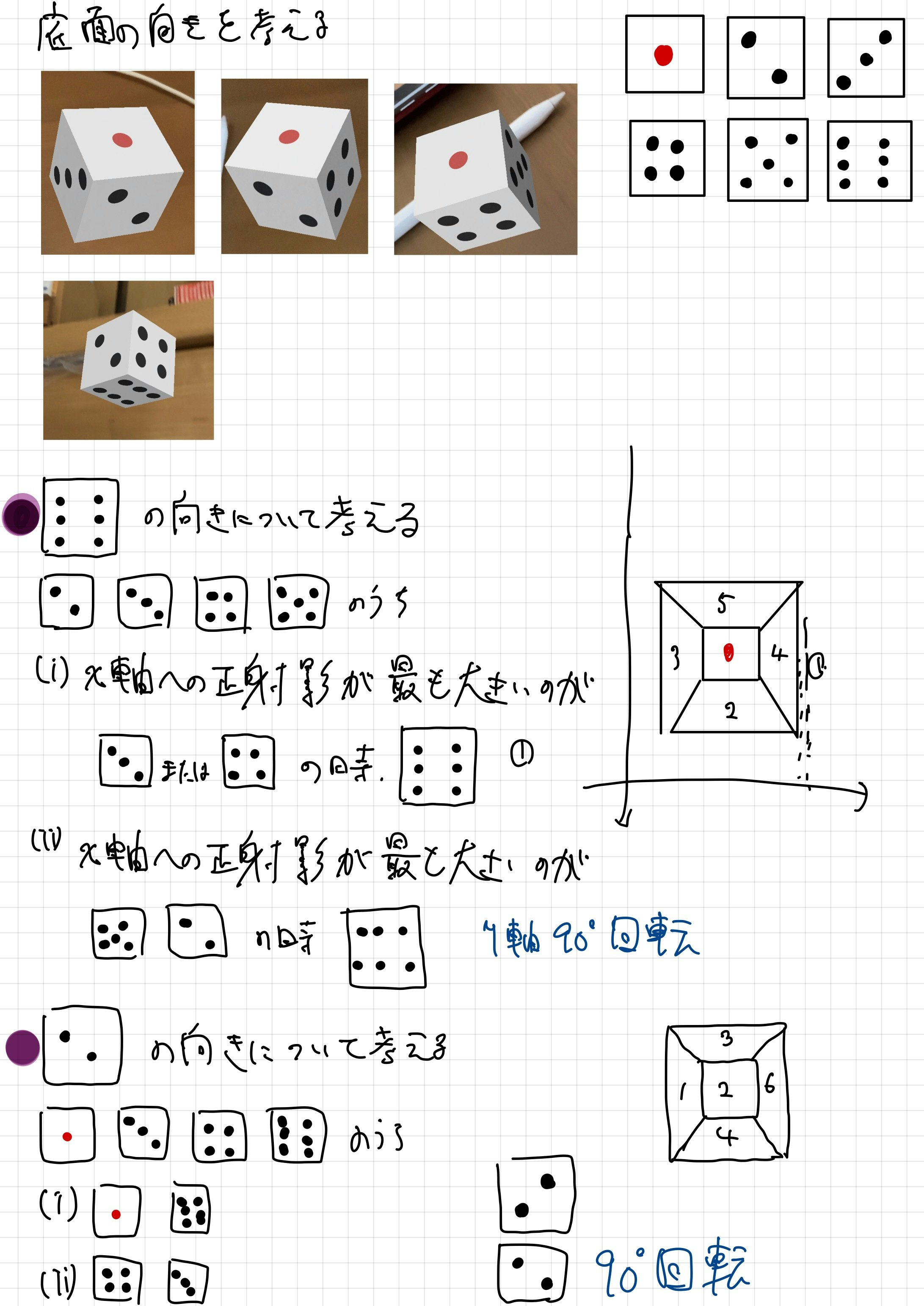 配置したサイコロにとっての上下左右と,ユーザーが画面上で操作する上下左右が異なる